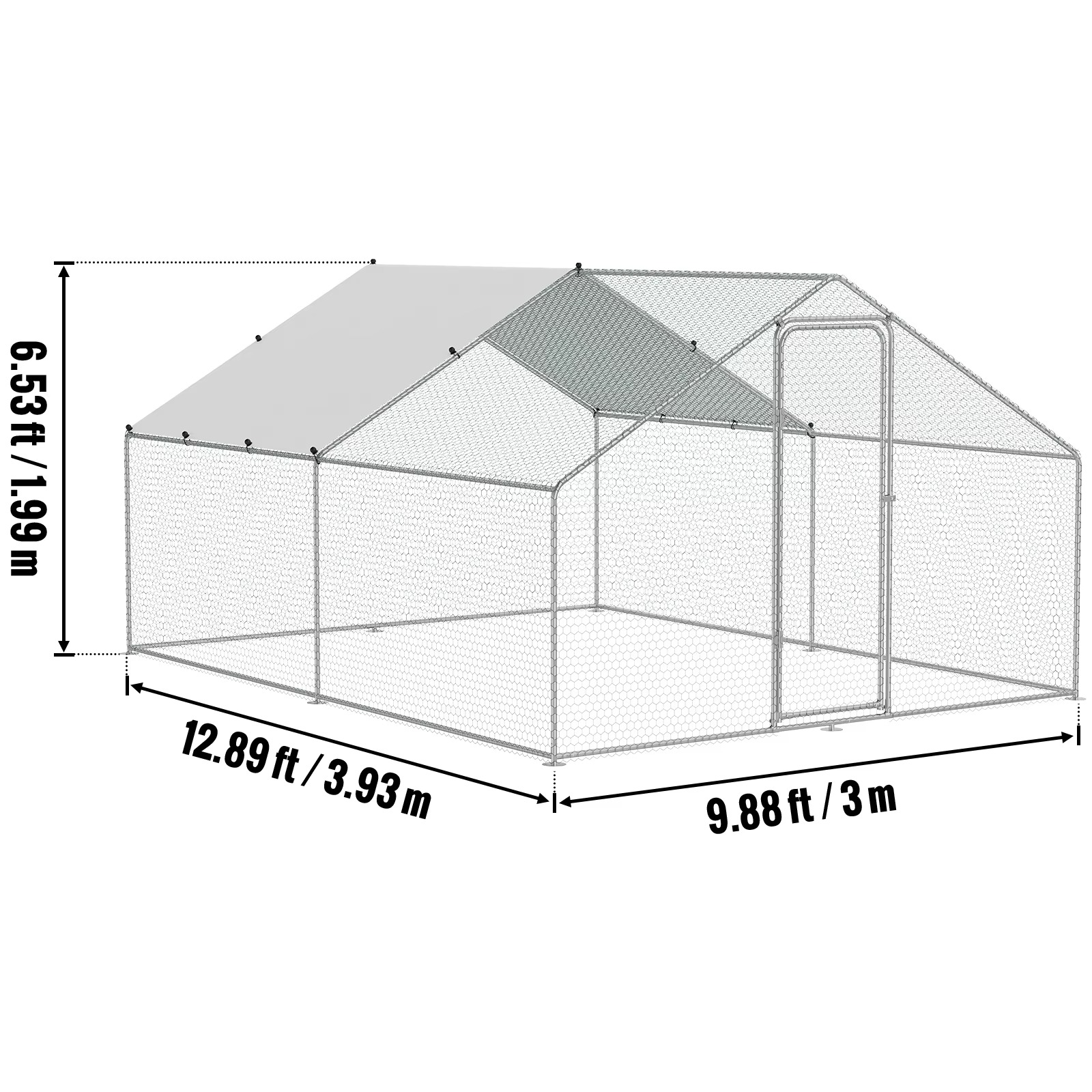 Too oma kanadele, partidele, küülikutele ja teistele väikeloomadele ideaalne välikodu meie VEVOR 4x3m metallist linnuaedikuga. Kogu konstruktsioon on valmistatud terasest ja kahepoolse PE kattega katusest, pakkudes vastupidavat kaitset nii UV-kiirguse kui vihma eest. Tihe kuusnurkne võrk ja maapinnaga ühtiv raam hoiavad loomad turvaliselt sees ning kutsumata külalised eemal.