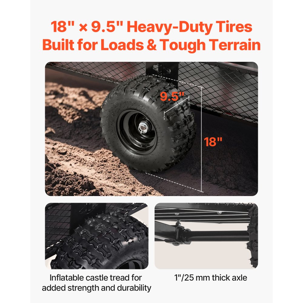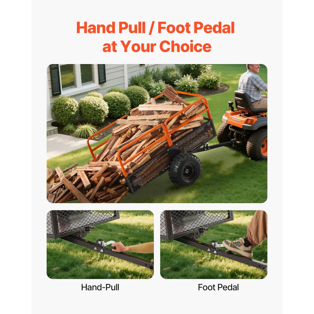 Robustne teraskonstruktsioon tagab haagise vastupidavuse ja pika eluea. See on praktiline lahendus igasuguste aiatööde jaoks, sealhulgas muruniiduki, traktori ja aiaprügi transportimiseks.