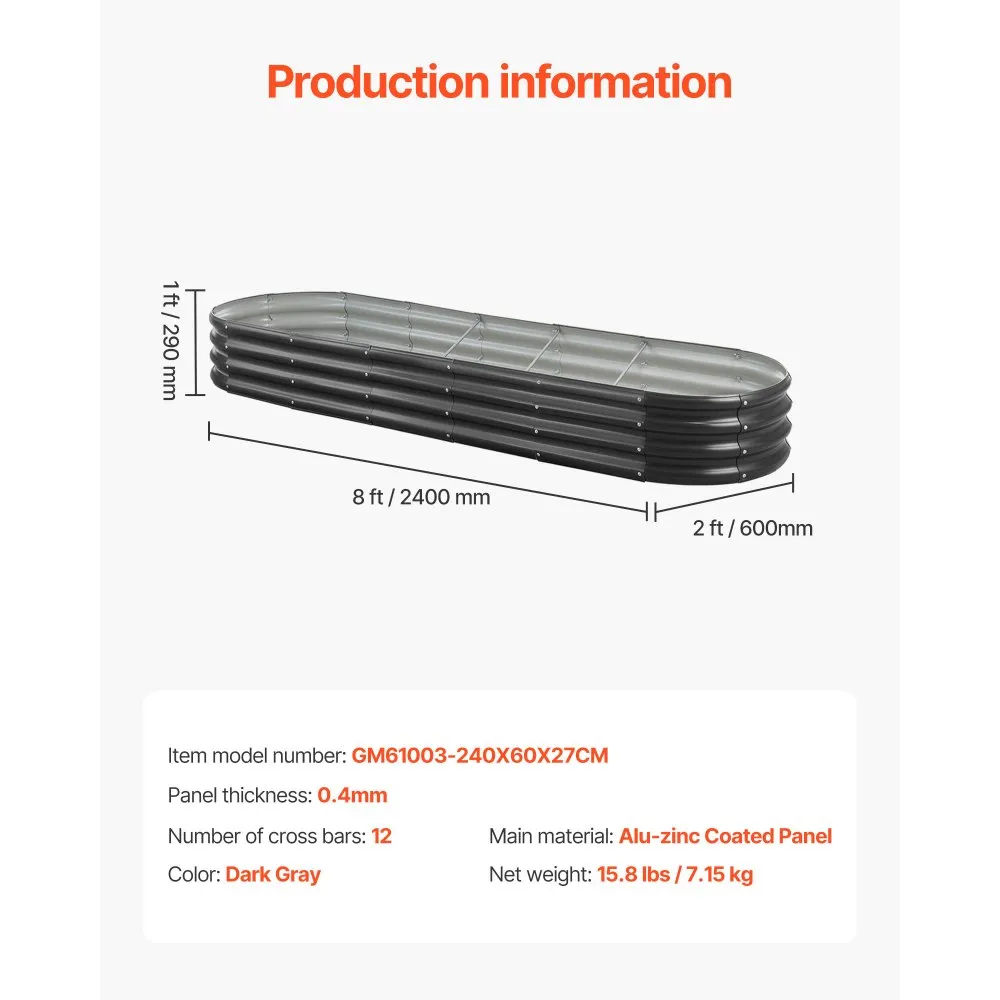 Metallist kõrg-taimekast (2,4 x 0,6 x 0,3 m, ovaalne, tsingitud)