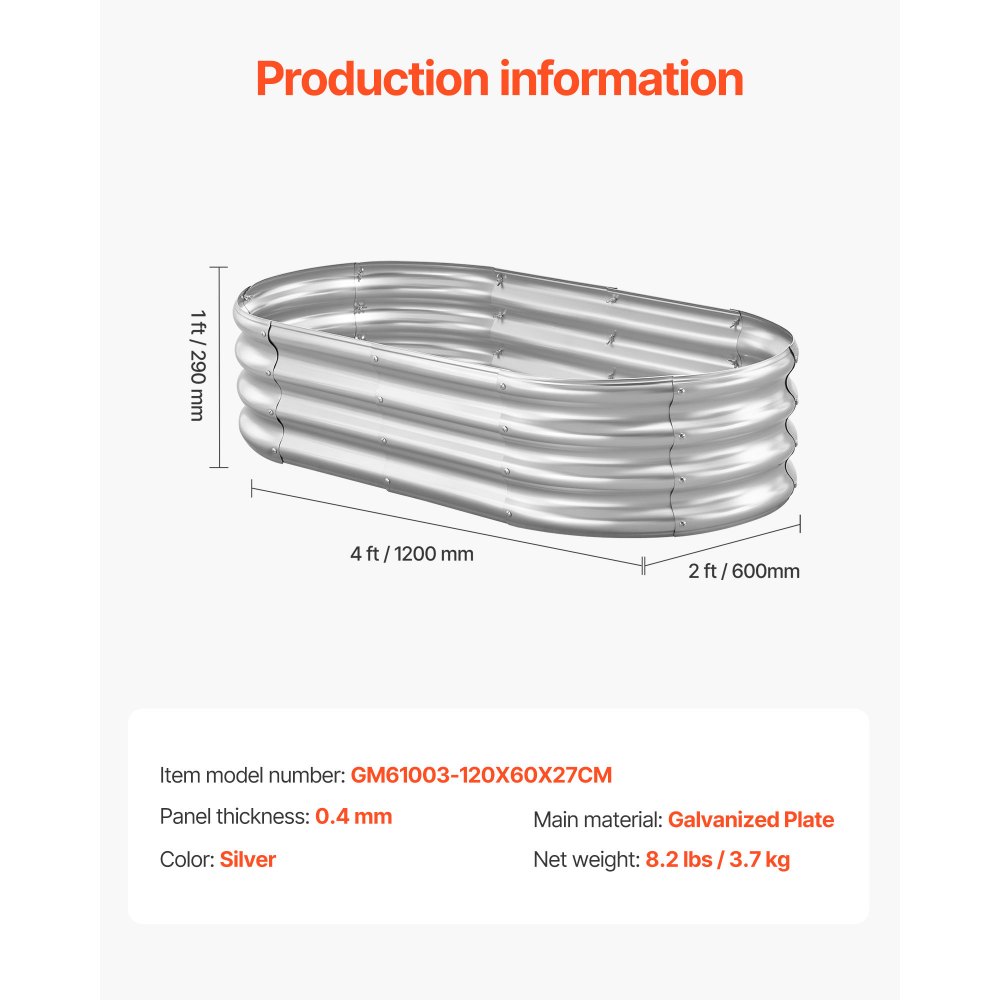 Metallist Tõstetud Aiapeenar (120×60×30 Cm, Ovaalne, 0.4mm, 3.7kg)