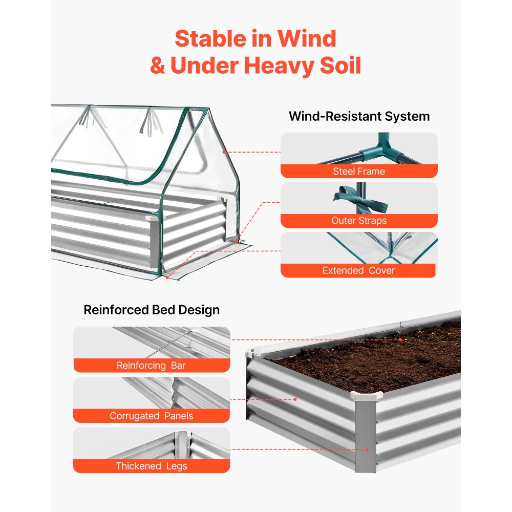 Tõstetud aiapeenar kattega on praktiline lahendus taimede kasvatamiseks igas aias. Selle galvaniseeritud metallist konstruktsioon tagab vastupidavuse ja pikaealisuse, sobides nii lillede kui ka köögiviljade kasvatamiseks. Komplektis on PE kasvuhoone kate ja kindad, et kaitsta teie taimi ilmastiku eest.