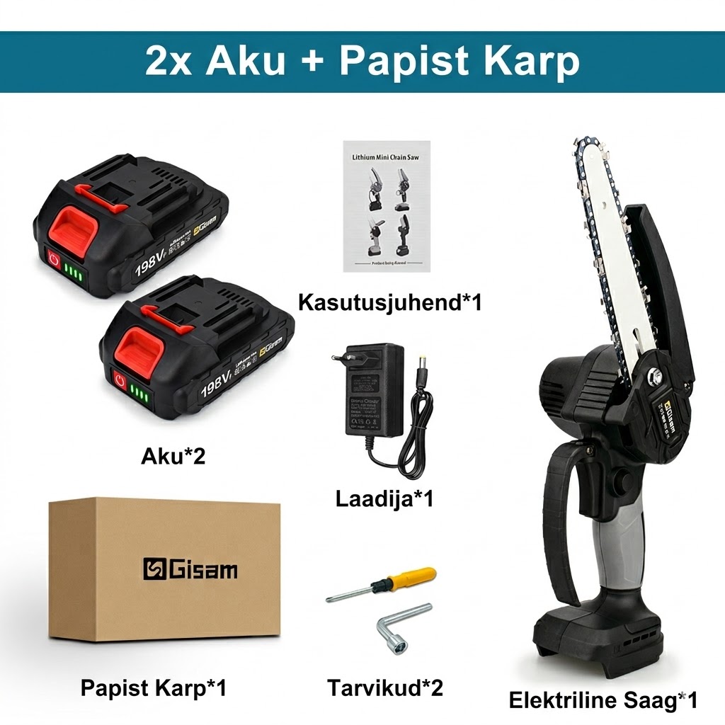 Akukettsaag 6″ – 2 × 7500 mAh akut, automaatne õlitus ja kiirpingutus