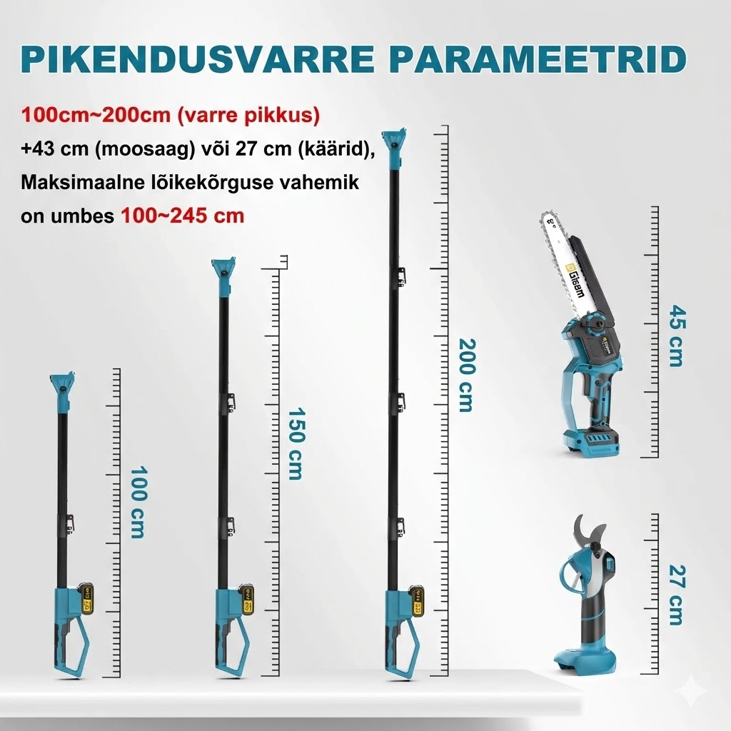 ✅ Teleskoopvars kuni 2,4 m – mugav töö kõrgematel puudel ilma redelita