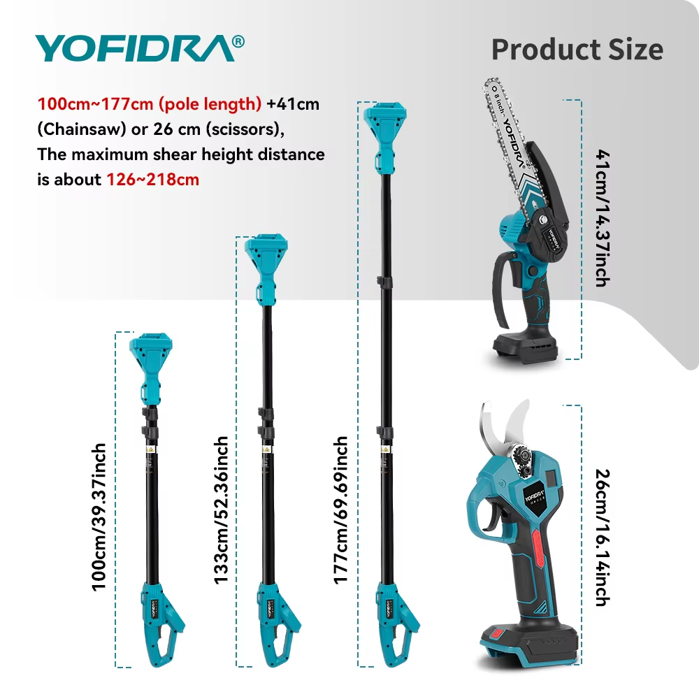 YOFIDRA 3in1 teleskoop oksalõikuri komplekt on võimas ja mitmekülgne aiatööriist, mis sobib nii kodukasutajale kui ka professionaalile. Komplekt sisaldab kahte akut, mis võimaldavad töötada pikemalt ilma katkestusteta.