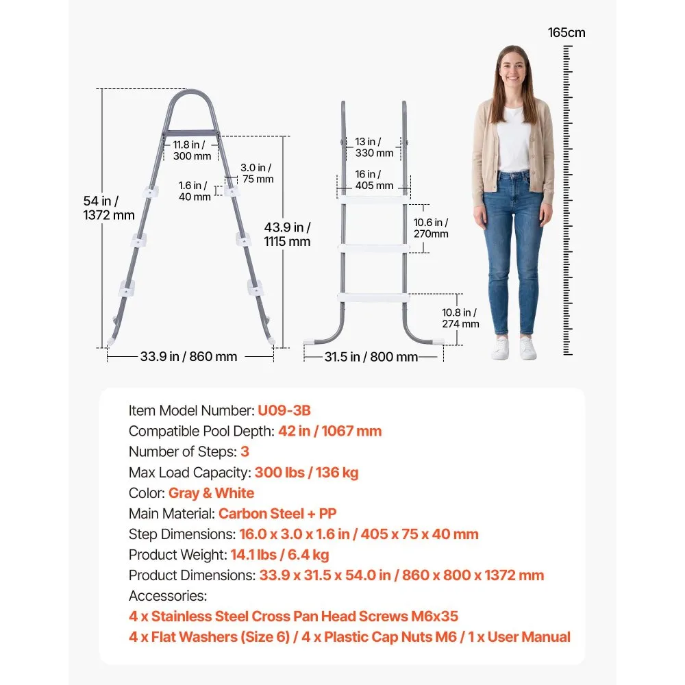 See vastupidav basseini redel on valmistatud terasest ja sobib koduaedadesse. Lihtne paigaldus ja libisemiskindlad astmed tagavad turvalisuse.
