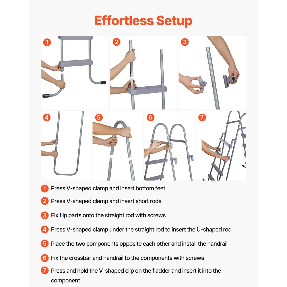 Lihtne paigaldus ja vastupidav konstruktsioon teevad sellest praktilise valiku igale maapealsele basseinile. Redel on disainitud nii, et see sobib ideaalselt igasse koduõue, pakkudes turvalist ja mugavat lahendust.