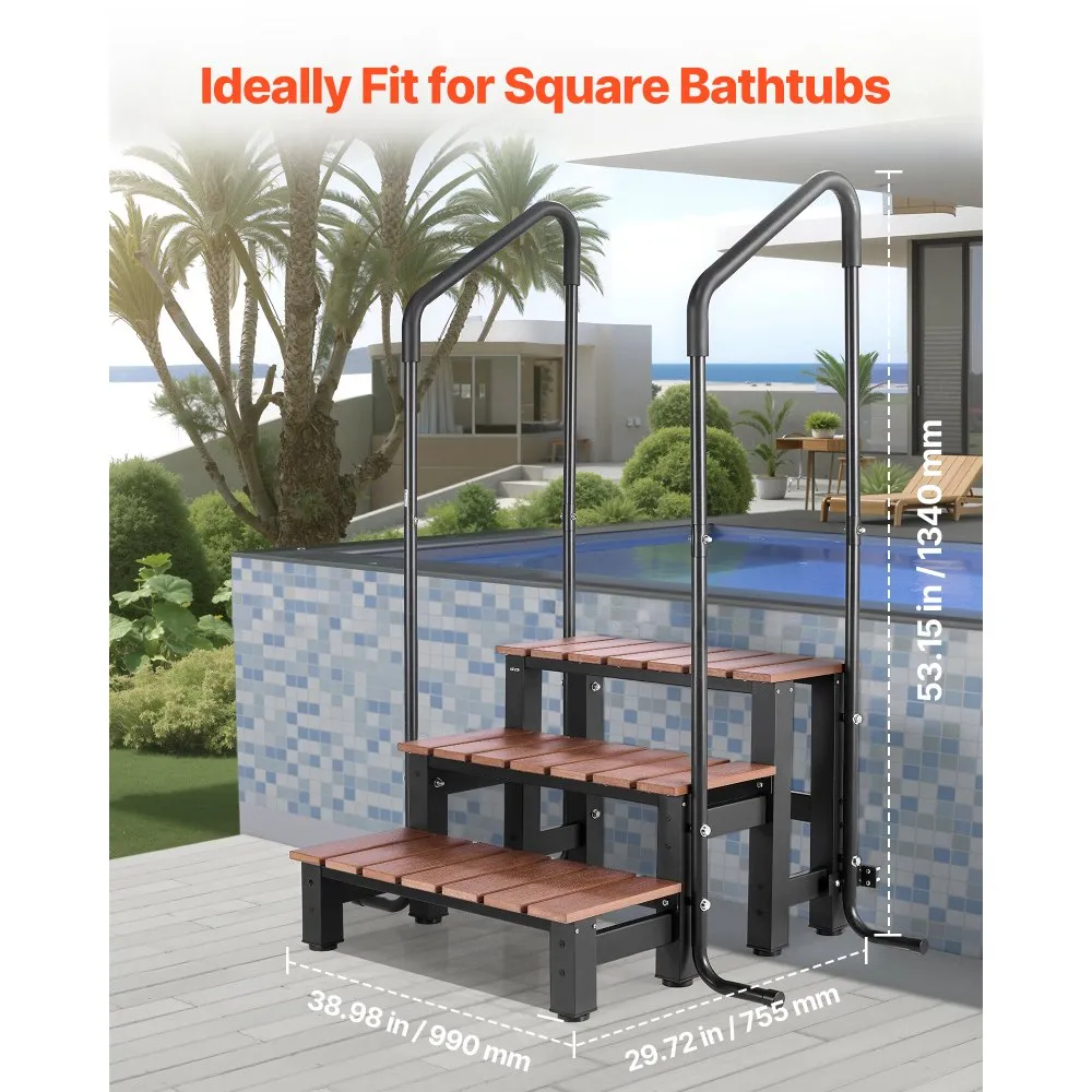 See vastupidav vannitrepp on praktiline lahendus turvaliseks ligipääsuks kuumaveetünnidele ja basseinidele. Tänu laiale konstruktsioonile ja käsipuule on see mitmekülgne ja turvaline.