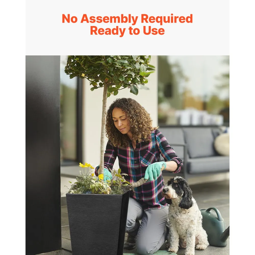 Komplekt 2-st kõrgest väli-lillepotist on mõistlik valik neile, kes otsivad modernset ja praktilist lahendust oma kodu kaunistamiseks. Must koonusjas disain annab lillepotile kaasaegse välimuse, mis sobib nii sise- kui ka välistingimustes kasutamiseks. Komplekt sisaldab kahte ruudukujulist lillepotti, mis on valmistatud vastupidavatest materjalidest ja varustatud sisseehitatud drenaažisüsteemiga.
