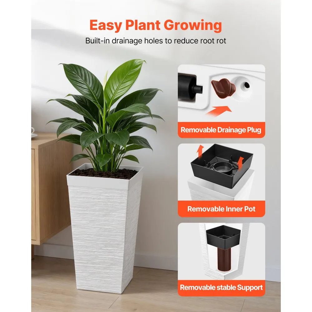 Kõrged Taimekastid 2 Komplekt, 58 Cm Suured Õue Kitsenevad Taimekastid, Valge