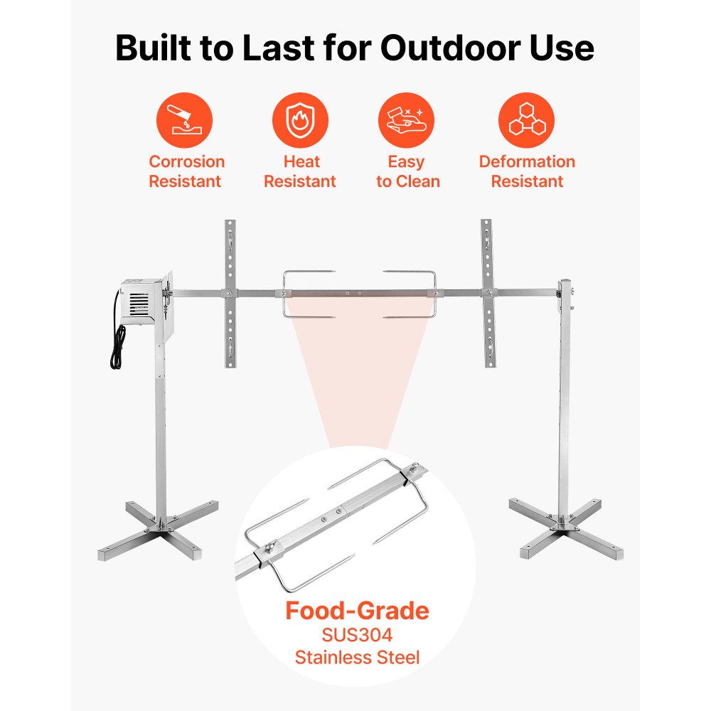 Elektriline grillvarras on praktiline lahendus koduõue grillipidudeks. Sellel on 38W mootor, mis tagab automaatse pöörlemise ja ühtlase küpsemise. Sobib nii peredele kui ka sõpruskondadele. Komplekt sisaldab kõike vajalikku, et alustada grillimist kohe.