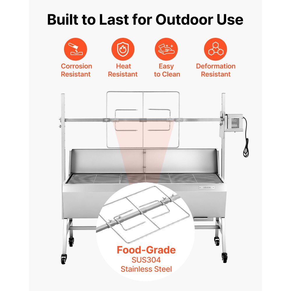 See vastupidav elektriline rotisserie grill on praktiline lahendus välistingimustes grillimiseks ja sobib hästi nii sealiha kui ka lambaliha küpsetamiseks. Roostevabast terasest konstruktsioon tagab pikaajalise kasutuse.