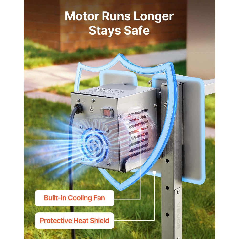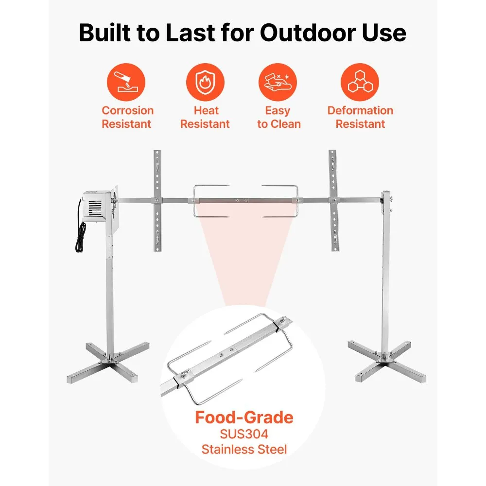 See vastupidav elektriline rotisserie grill on mõistlik valik koduaias grillimiseks. Roostevabast terasest konstruktsioon tagab pikaealisuse ja hõlpsa puhastamise.