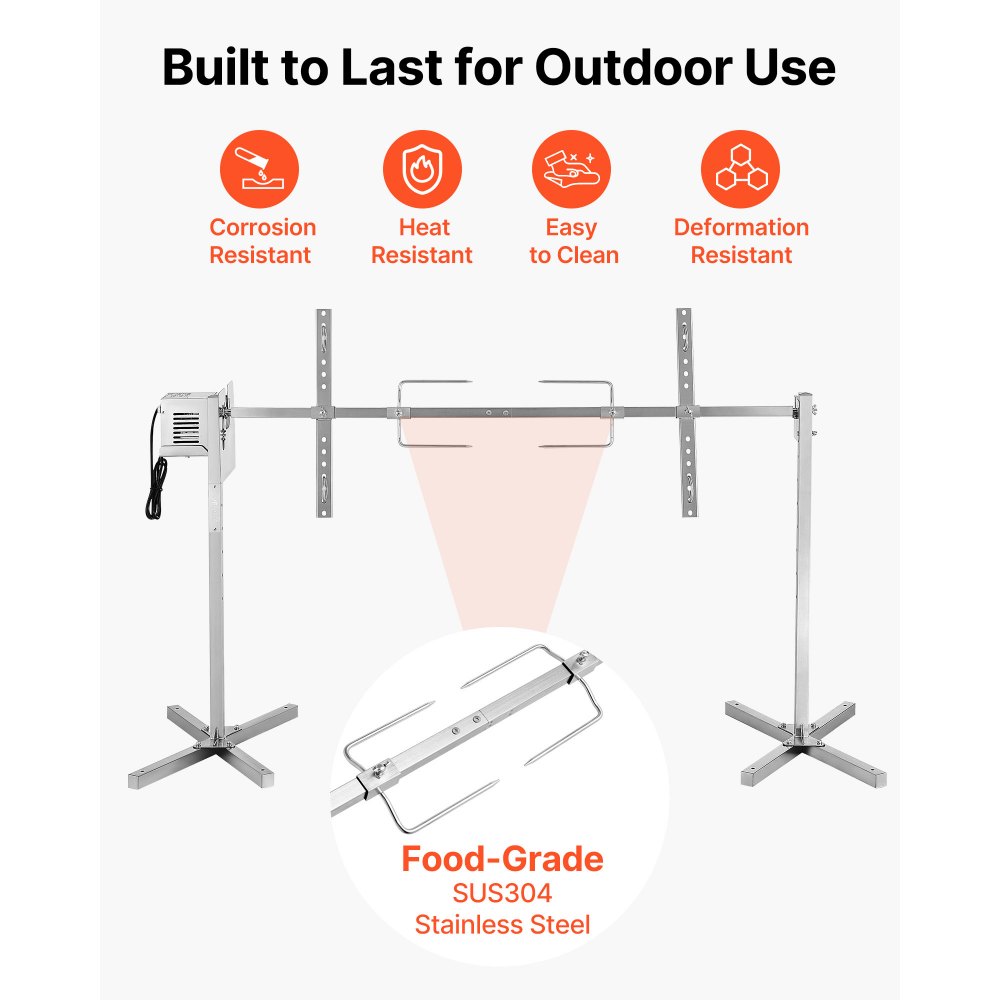 See elektriline rotisserii grill on praktiline lahendus pidudele ja koosviibimistele. Automaatne pöörlemine ja tugev konstruktsioon tagavad ühtlase küpsetamise.