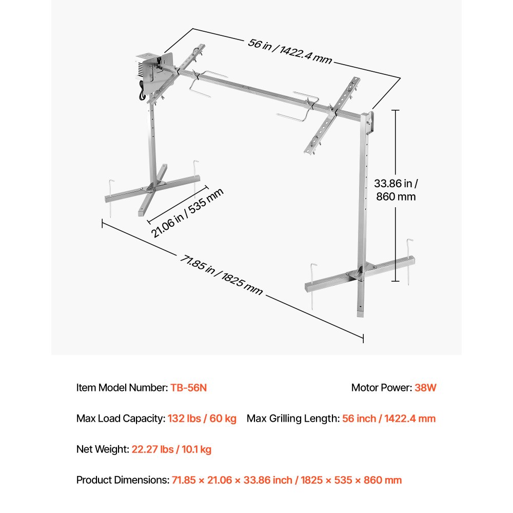 Elektriline Rotisserii Grill (38W, 60 kg Kandevõime, 8 Kõrgustaset)
