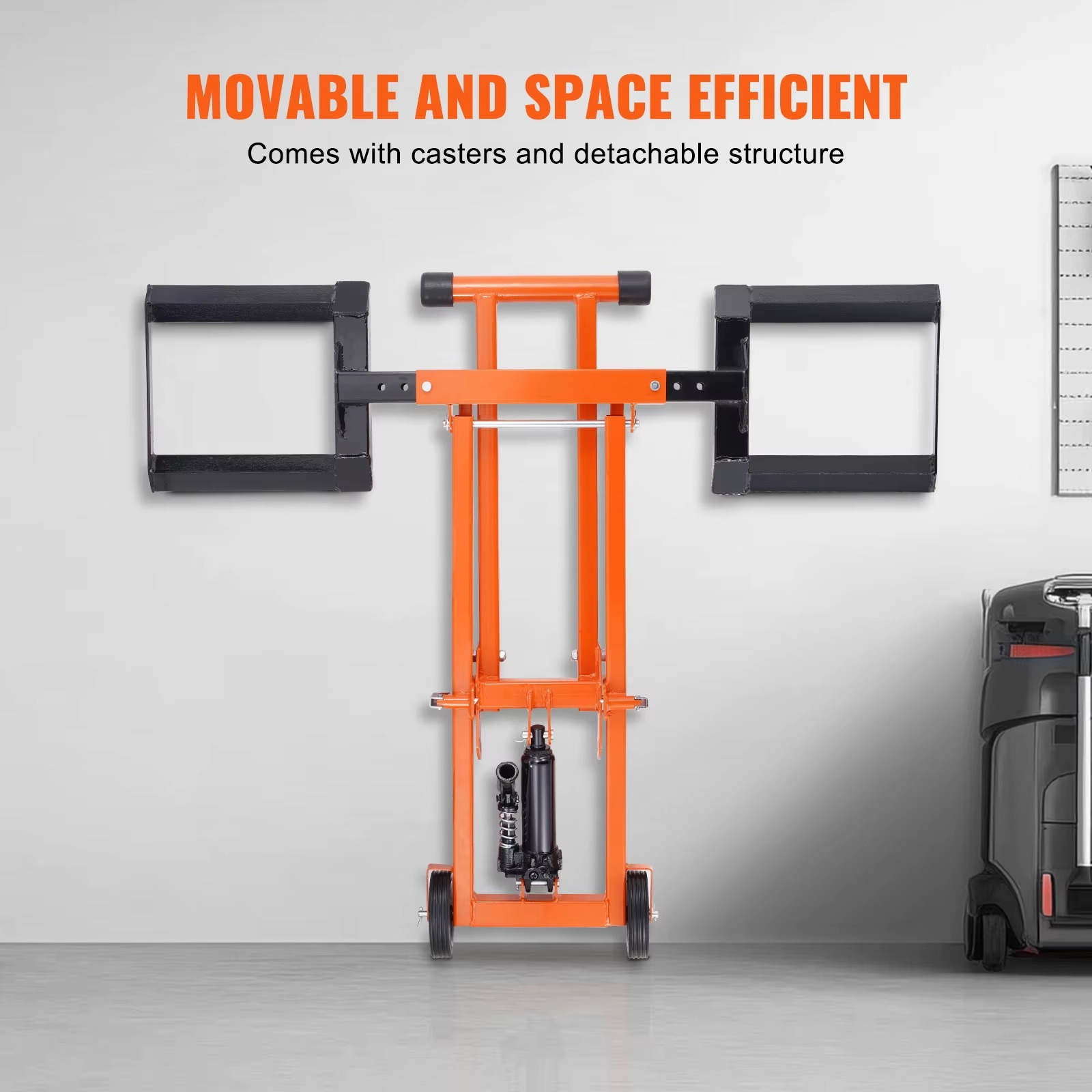 Lisamugavust pakuvad transpordirattad ja kokkupandav disain, mis teevad selle kompaktseks ja ruumisäästlikuks murutraktori hooldustõstukiks, mida on lihtne liigutada ja hoiustada garaažis või kuuris.