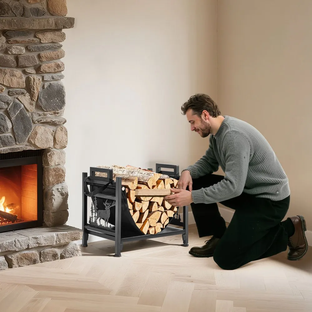 Sisekasutuseks kumer puuriida hoidja on praktiline lahendus puude hoiustamiseks kodus. Selle kumer disain võimaldab mahutada rohkem puid ning sobib hästi nii kaminaga eluruumidesse kui ka suvekööki. Kaasas on lõuendist kanderihm, mis teeb puude transportimise lihtsaks.