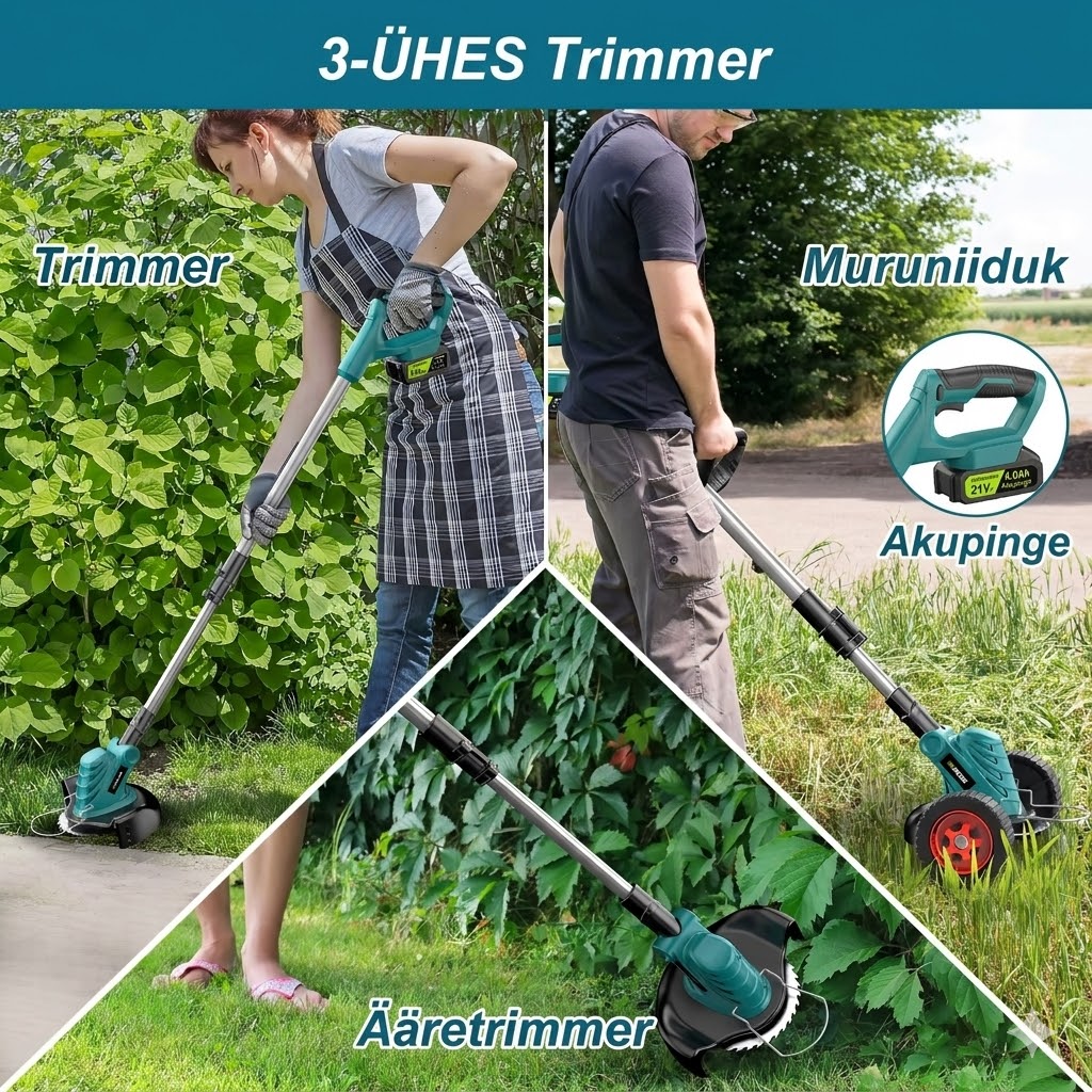 ✅ 3 erinevat lõiketera – sobib murule, umbrohule ja põõsastele