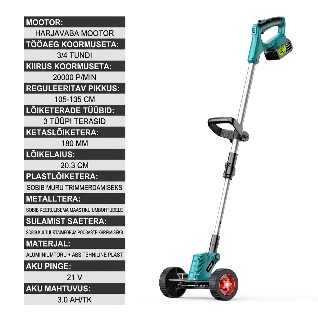 ✅ 20000 p/min võimas akutrimmer – kiire ja tõhus niitmine