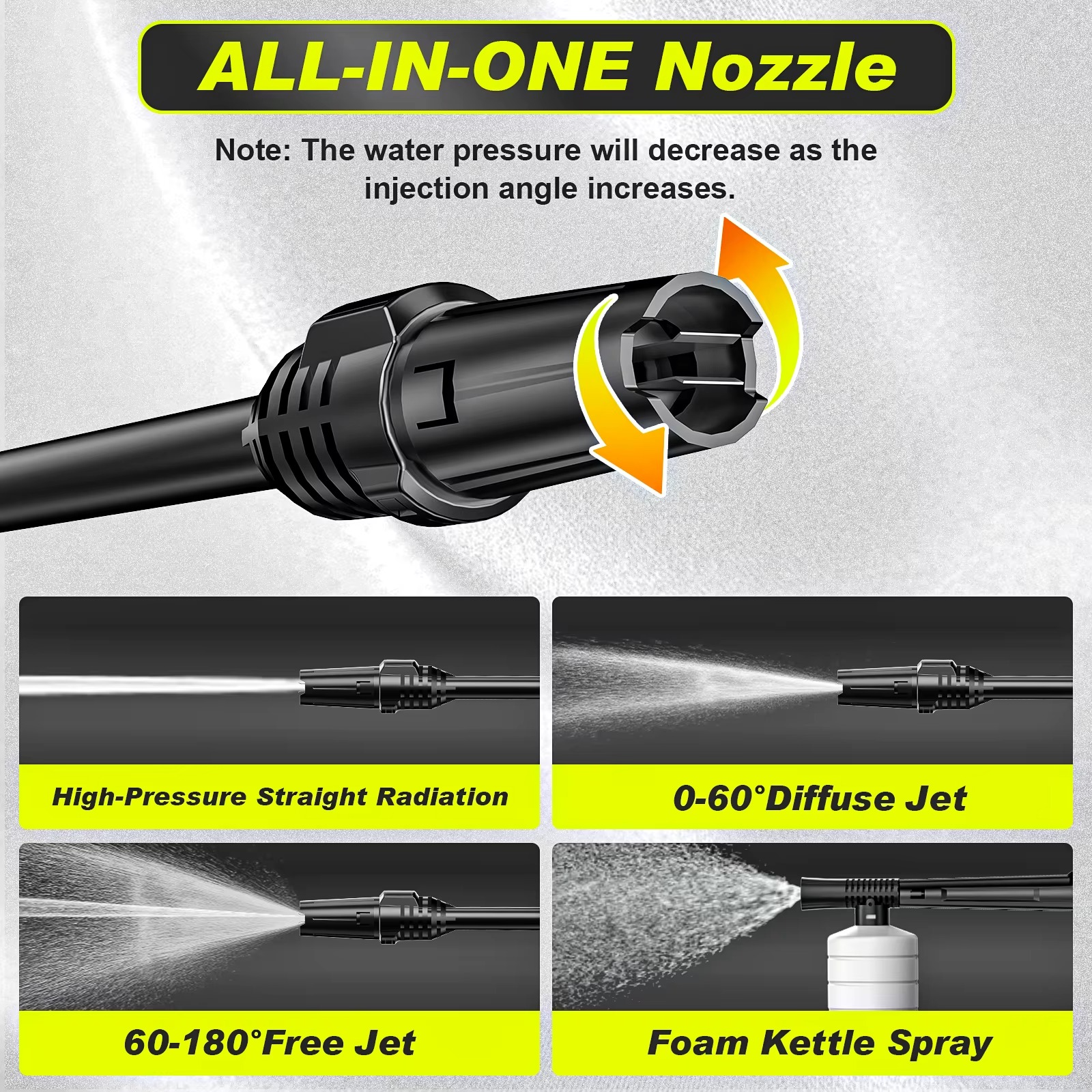 Unikaalne 0–180° reguleeritav pihustiotsik võimaldab muuta veejuga vastavalt tööle – ilma otsikuid vahetamata. See teeb puhastamise kiiremaks, mugavamaks ja tõhusamaks nii õrnadel kui ka tugevalt määrdunud pindadel.