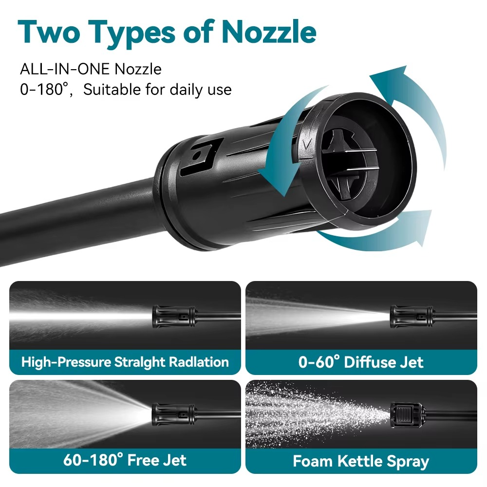180° reguleeritav pihustusotsik võimaldab valida sobiva veejuga vastavalt tööülesandele: