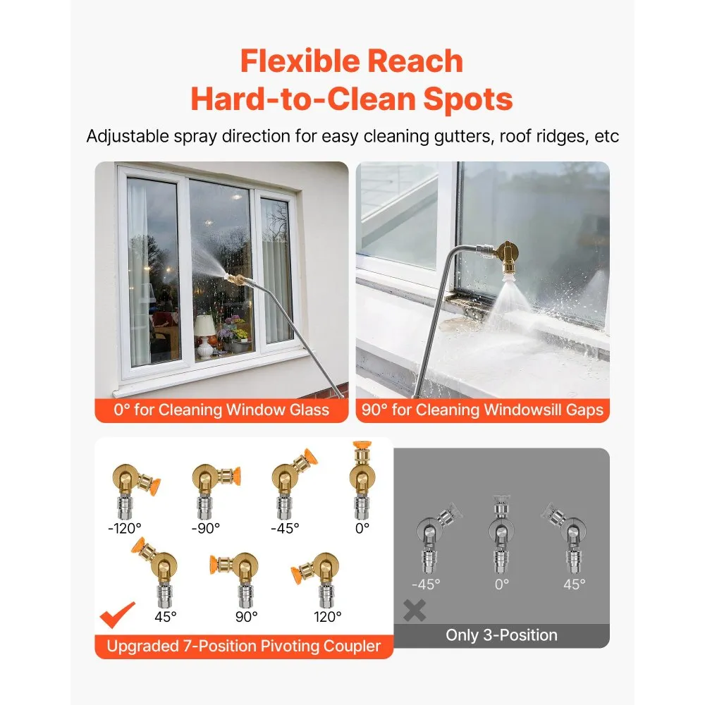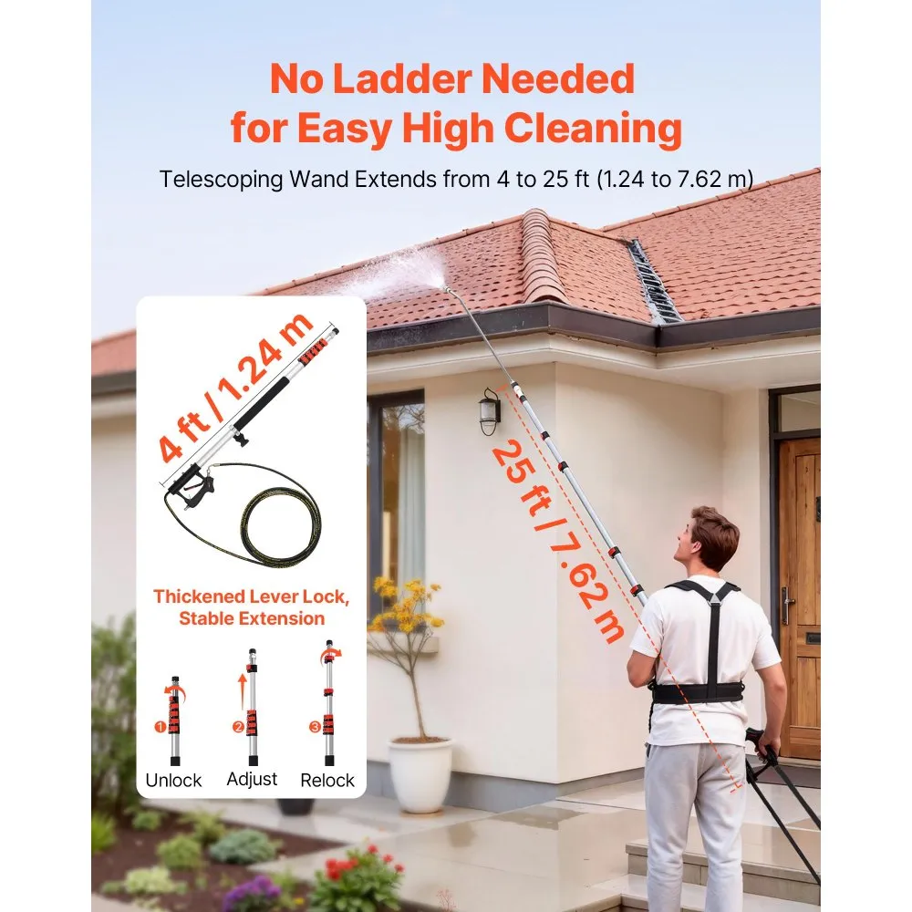See reguleeritav survepesuri teleskoopvars sobib kõrgete pindade puhastamiseks, ulatudes kuni 7,62 m. Komplektis on 7 pihustiotsakut ja äke.