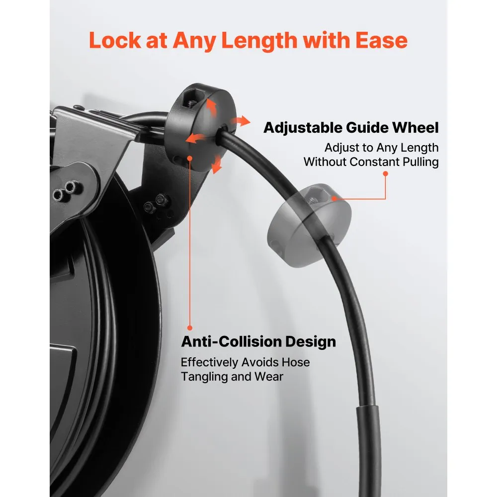 See vastupidav survepesuri voolikurull on automaatse tagasikerimise funktsiooniga ja sobib mitmekülgseks kasutamiseks. Lihtne paigaldada seinale, lakke või põrandale.