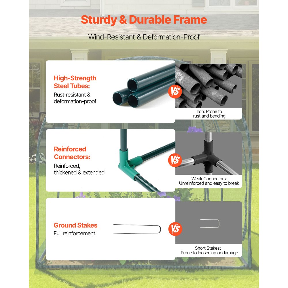 Tuulekindel konstruktsioon, valmistatud pulbervärvitud terastorudest, tagab stabiilsuse ja vastupidavuse. Tõmblukuga uks võimaldab lihtsat juurdepääsu taimedele. praktiline lahendus köögiviljade, lillede ja puuviljade kasvatamiseks.