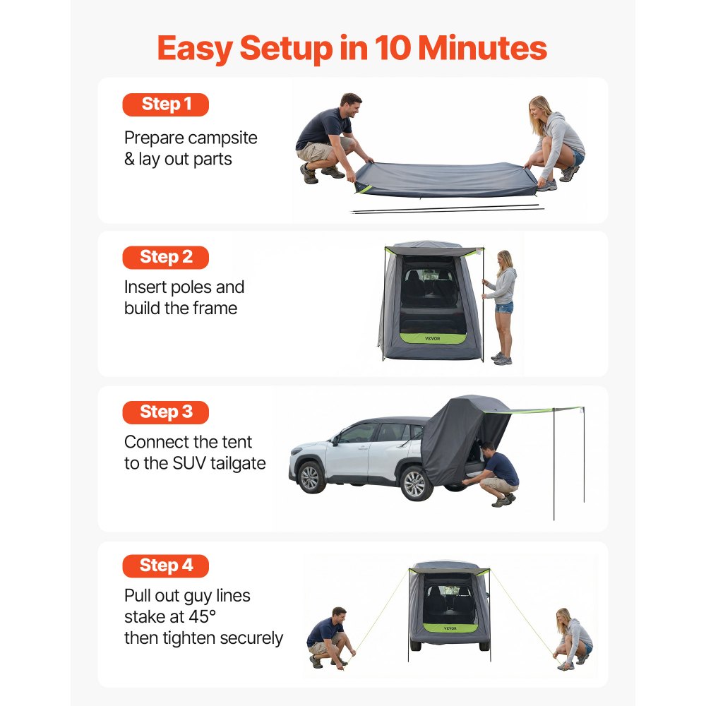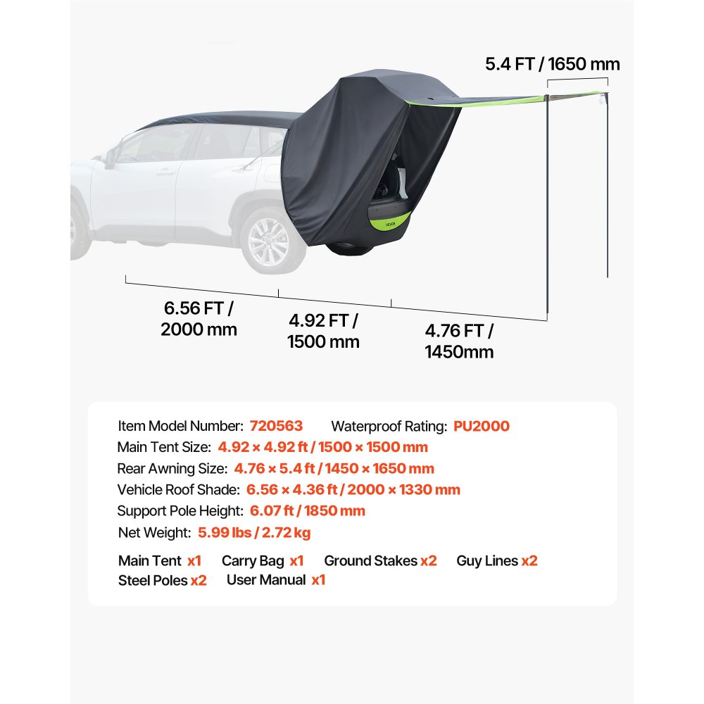 SUV telk varikatusega on loodud pakkuma mugavust ja kaitset igal aastaajal. Veekindel PU2000 mm materjal tagab, et te ei pea muretsema vihma ega niiskuse pärast. Sobib ideaalselt matkajatele ja autokasutajatele, kes soovivad lisaruumi ja kaitset.