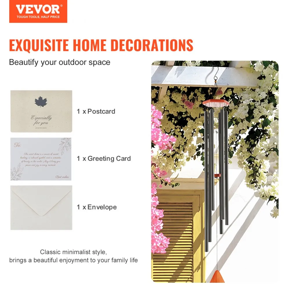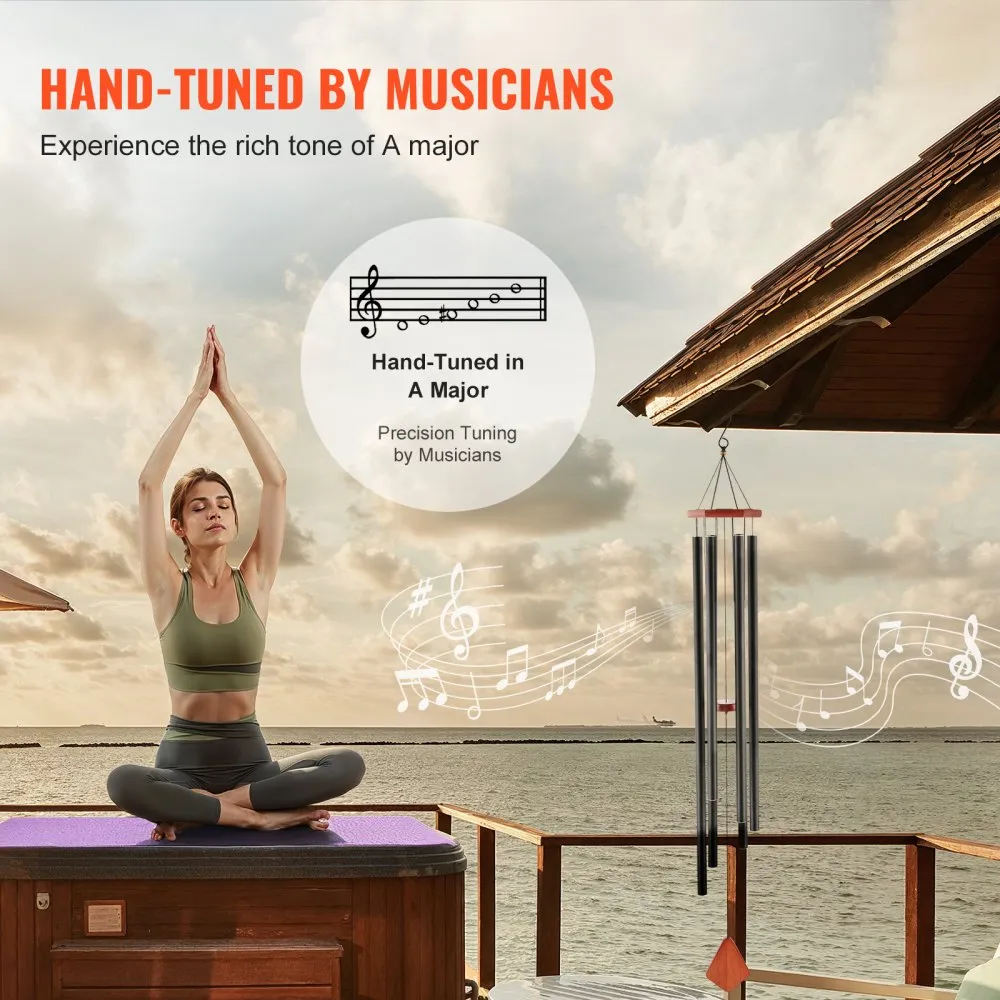 Süvahelilised tuulekellad on valmistatud kvaliteetsest alumiiniumist ja anodeeritud musta värviga, mis pakub vastupidavust erinevates ilmastikutingimustes. Need sobivad hästi nii aiakaunistuseks kui ka terrassile. Kella helid on käsitsi häälestatud, et pakkuda rahustavat ja meloodilist heli, mis loob meeldiva atmosfääri.