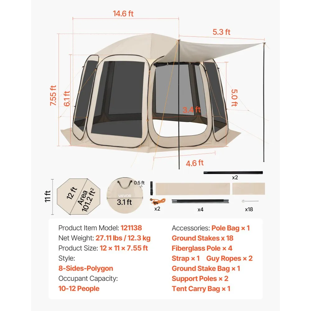 See ruumikas pop-up varjualune on praktiline lahendus välitegevusteks, mahutades kuni 12 inimest. Lihtne üles seada ja kaasas kanda.
