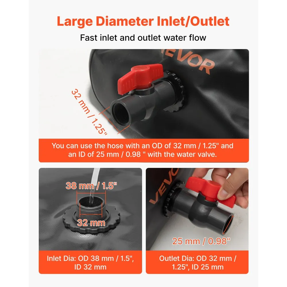 Kokkupandav Veemahuti (1000 L, 1000D PVC, 38 mm Sisselaskeava)