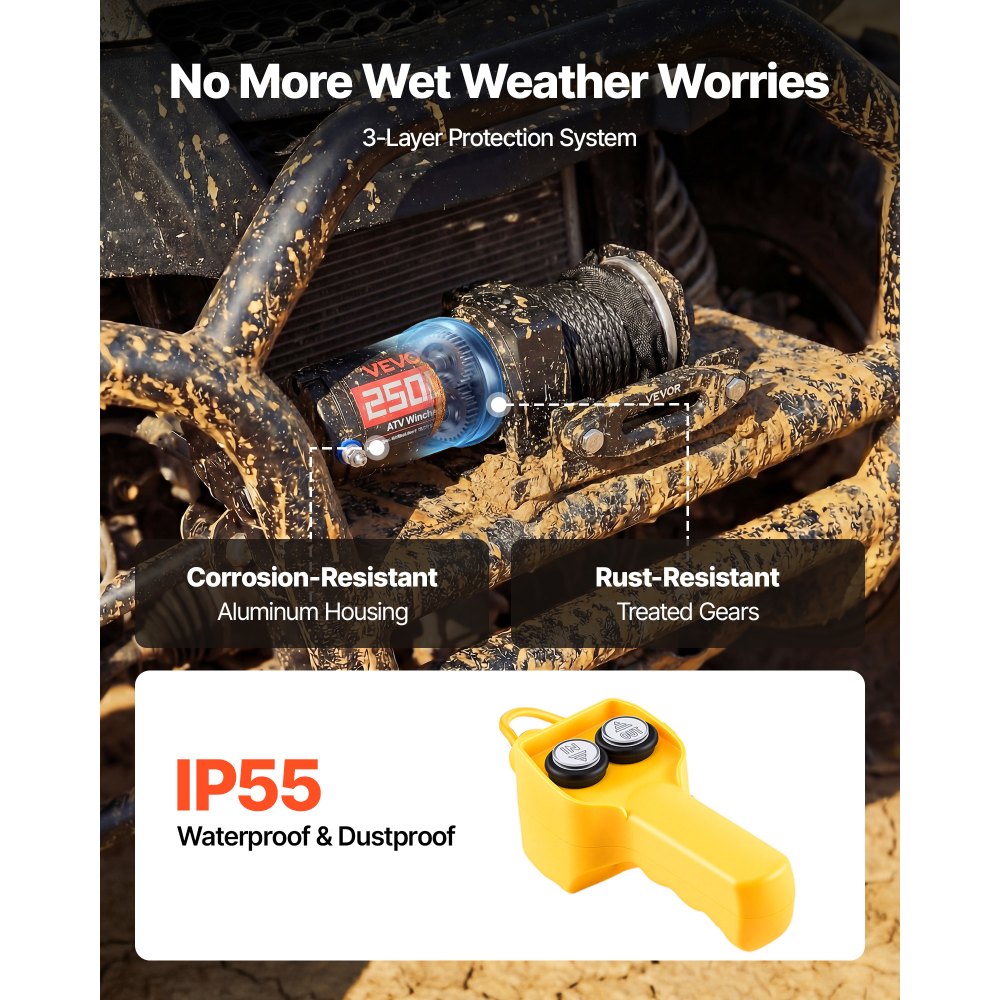 IP55 veekindlus tagab töökindluse igasugustes ilmastikutingimustes, olgu see siis vihm või lumi. See on praktiline lahendus igapäevaseks kasutamiseks, pakkudes kindlust ja mugavust teie ATV-de pukseerimisel.