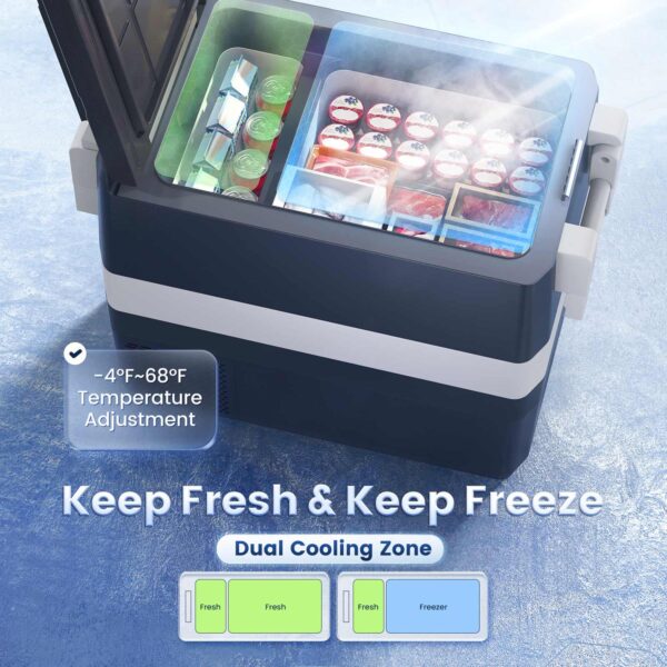 40L 12V kaasaskantav kompressoriga autokülmik – topeltkambrid, sügavkülm ja APP-juhtimine