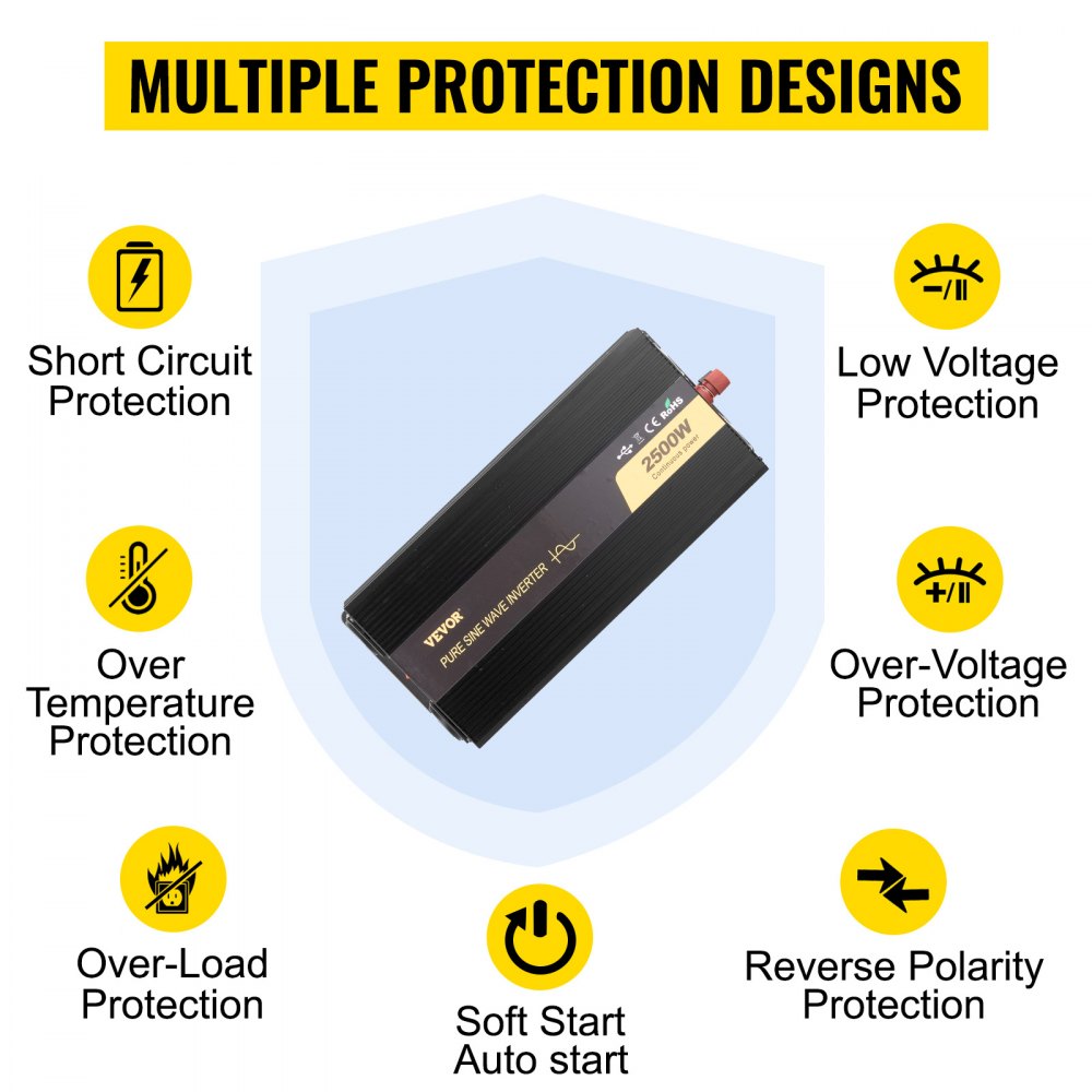 Puhas siinuslaine inverter on loodud tagama stabiilset ja usaldusväärset energiat erinevates olukordades. 2500 W pidev võimsus ja 5000 W tippvõimsus muudavad selle ideaalseks lahenduseks nii kodukasutajatele kui ka professionaalidele. Tugev alumiiniumkorpus kaitseb seadet kuumuse, külma ja korrosiooni eest.