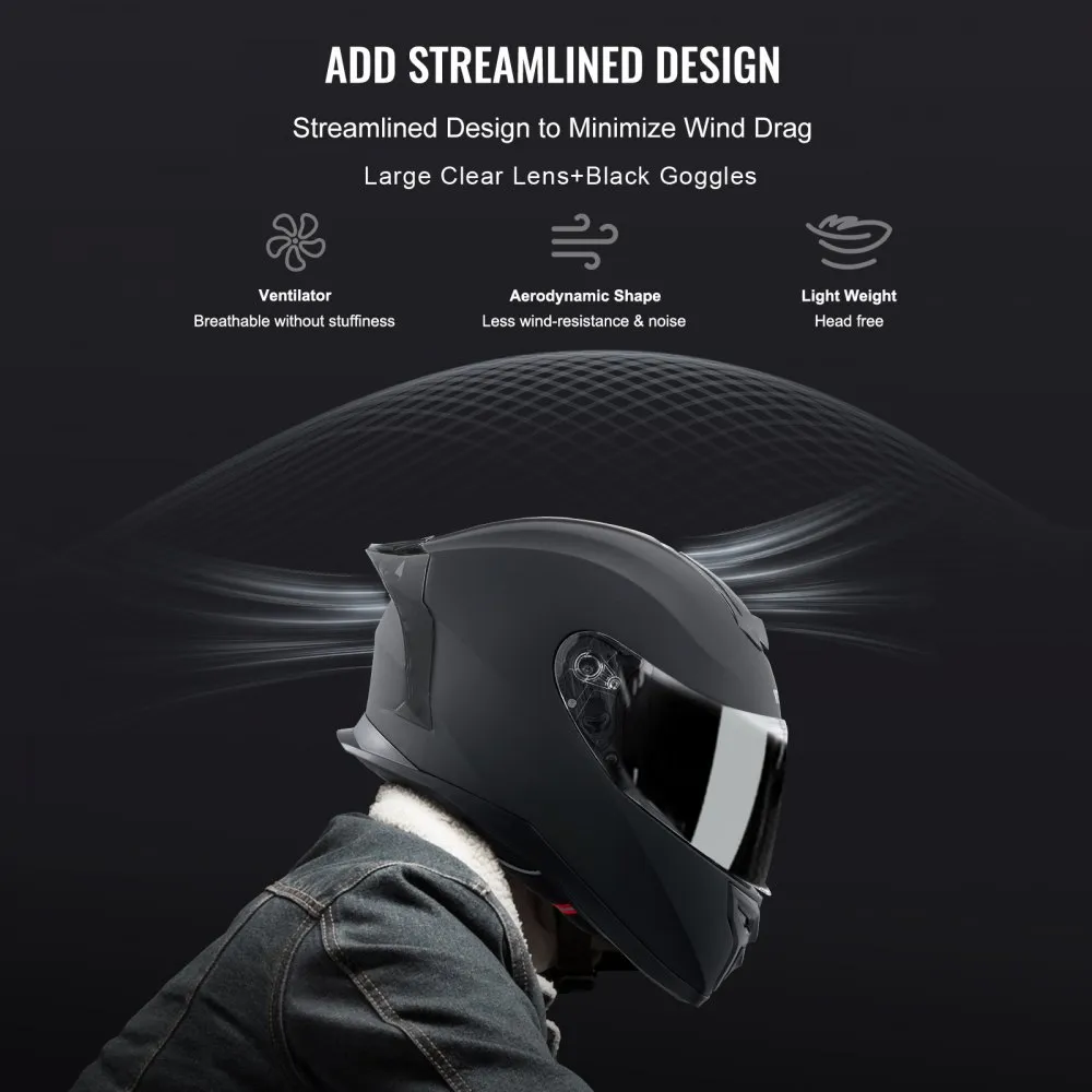 Täiskattega mootorrattakiiver Bluetoothiga on ECE heakskiidetud kiiver, mis pakub kõrget turvalisust ja mugavust nii noortele kui ka täiskasvanutele. Kiiver on valmistatud vastupidavast ABS materjalist, millele lisandub pehme EPS vaht ja nahasõbralik vooder, et pakkuda täielikku kaitset teie peaga. Sisseehitatud päikesekaitse ja vahetatav lääts tagavad selge nähtavuse ja kaitsevad pimestamise eest.