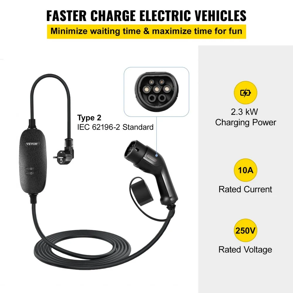 See vastupidav kaasaskantav elektriauto laadija on kiire ja lihtne kasutada ning sobib kodukasutajatele. Integreeritud ohutusfunktsioonid tagavad turvalise laadimise.