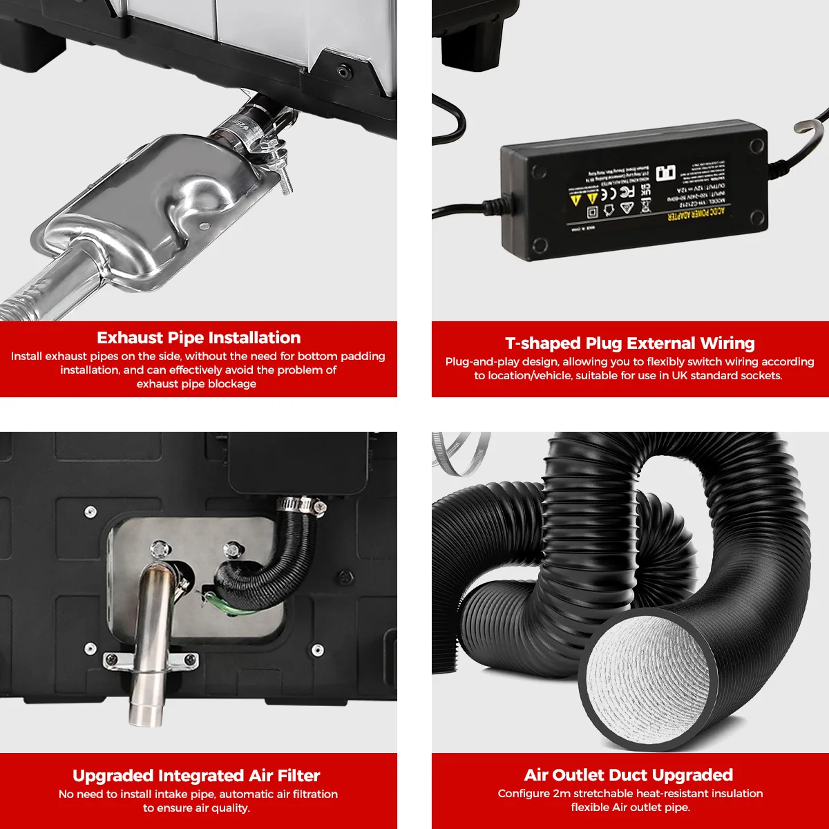 8kW diisel õhusoojendi (12V/24V/220V) – Kompaktne ja võimas küttelahendus autodele, RV-dele ja välitingimustesse. Madal kütusekulu, ventilatsioonifunktsioon ja mugav APP juhtimine. Vastupidav alumiinium-plastik korpus ja lihtne paigaldus.
