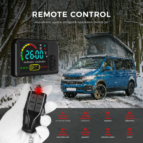✅ Bluetooth-rakendus ja kaugjuhtimispult – Juhi soojendit mugavalt läbi nutitelefoni Bluetoothi kaudu (kuni 80m ulatuses) või LCD-ekraaniga kaugjuhtimispuldist.
