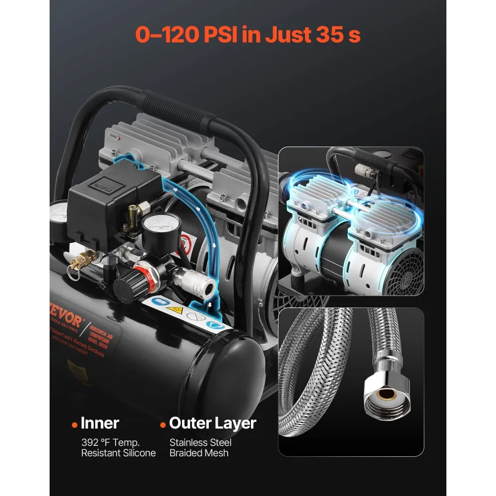 Vaikne töö, tänu 68 d B müratasemele, võimaldab kasutada kompressorit ka siseruumides ilma liigse müra tekitamata. Kerge kaal ja kaasaskantav disain muudavad selle ideaalseks lahenduseks kodukasutusse ja väiksematesse töökodadesse.