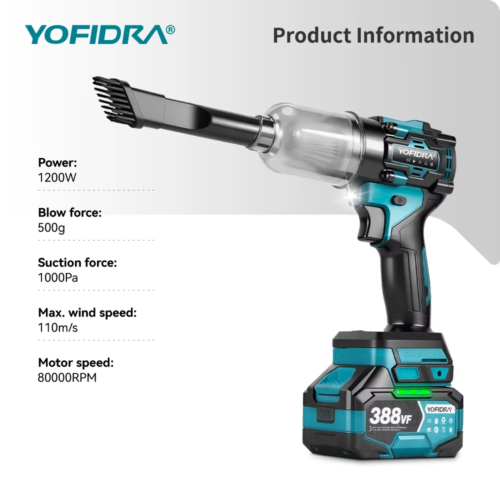 Yofidra 2-in-1 akutoitega puhur ja tolmuimeja on mitmekülgne tööriist, mis ühendab endas nii tugeva õhupuhuri kui ka tolmuimeja funktsiooni. Seade sobib suurepäraselt tolmu, mustuse, lehtede ja prahi eemaldamiseks garaažis, autos, töökojas või aias.