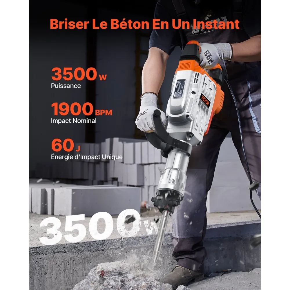 Elektriline lammutusvasar on võimas tööriist, mis on mõeldud betooni ja metallitööde kiireks ja täpseks teostamiseks. 3500 W mootor ja 60 J löögienergia tagavad tõhusa töö, sobides nii professionaalidele kui ka kodus kasutajatele. Komplektis on kaks peitlit ja kindad.