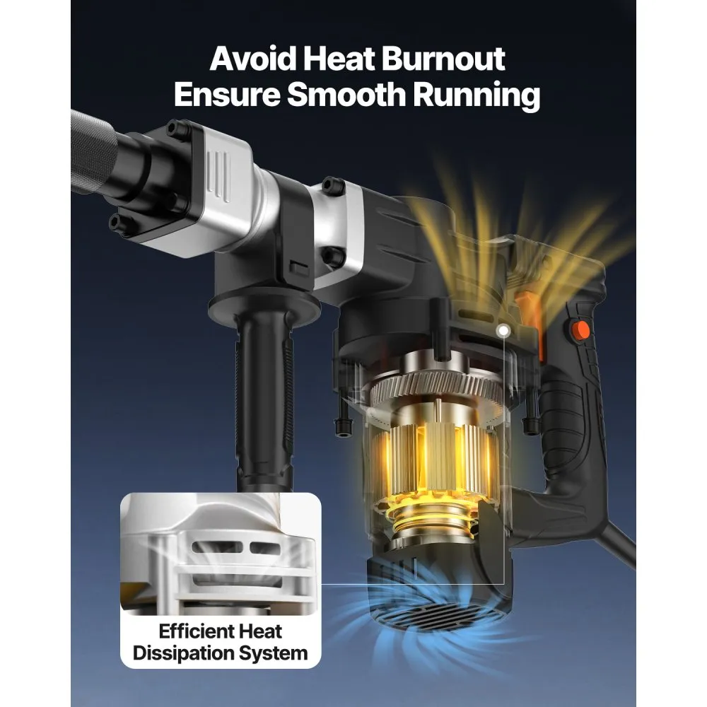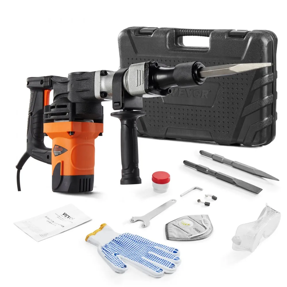 See vastupidav elektriline lammutusvasar on sobiv tööriist koduseks kasutamiseks. Kaasas on kaks peitlit ja 360° pöördkäepide.