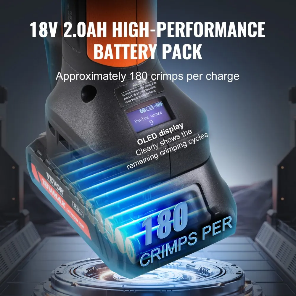 Kiire krimpimistsükkel, mis kestab vaid 2–4 sekundit, teeb töö kiireks ja lihtsaks. OLED ekraan võimaldab jälgida aku taset ja tööriista olekut reaalajas. praktiline lahendus tööstuslikuks ja koduseks kasutamiseks.