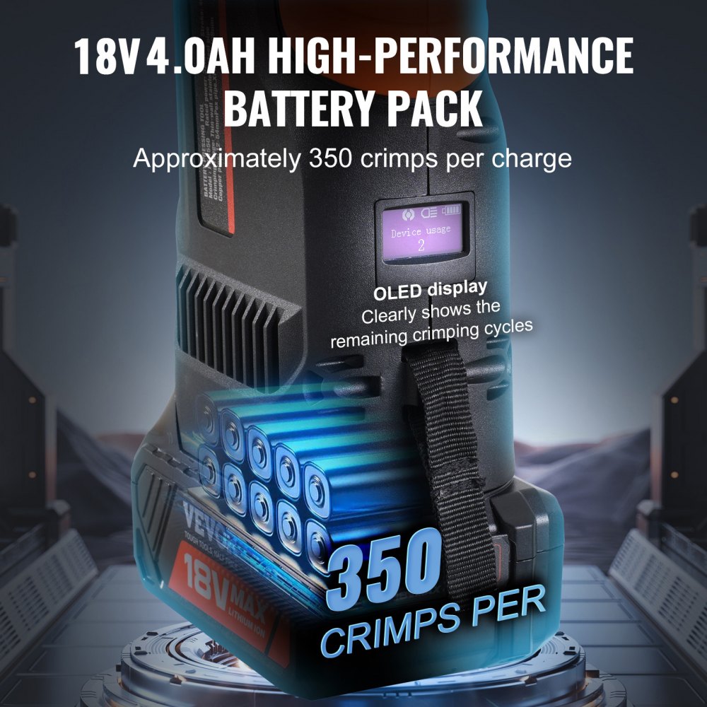 See elektriline torupressi komplekt on varustatud 18V akudega ja sobib ideaalselt kiireks ja täpseks pressimiseks. OLED ekraan tagab töötingimuste jälgimise.