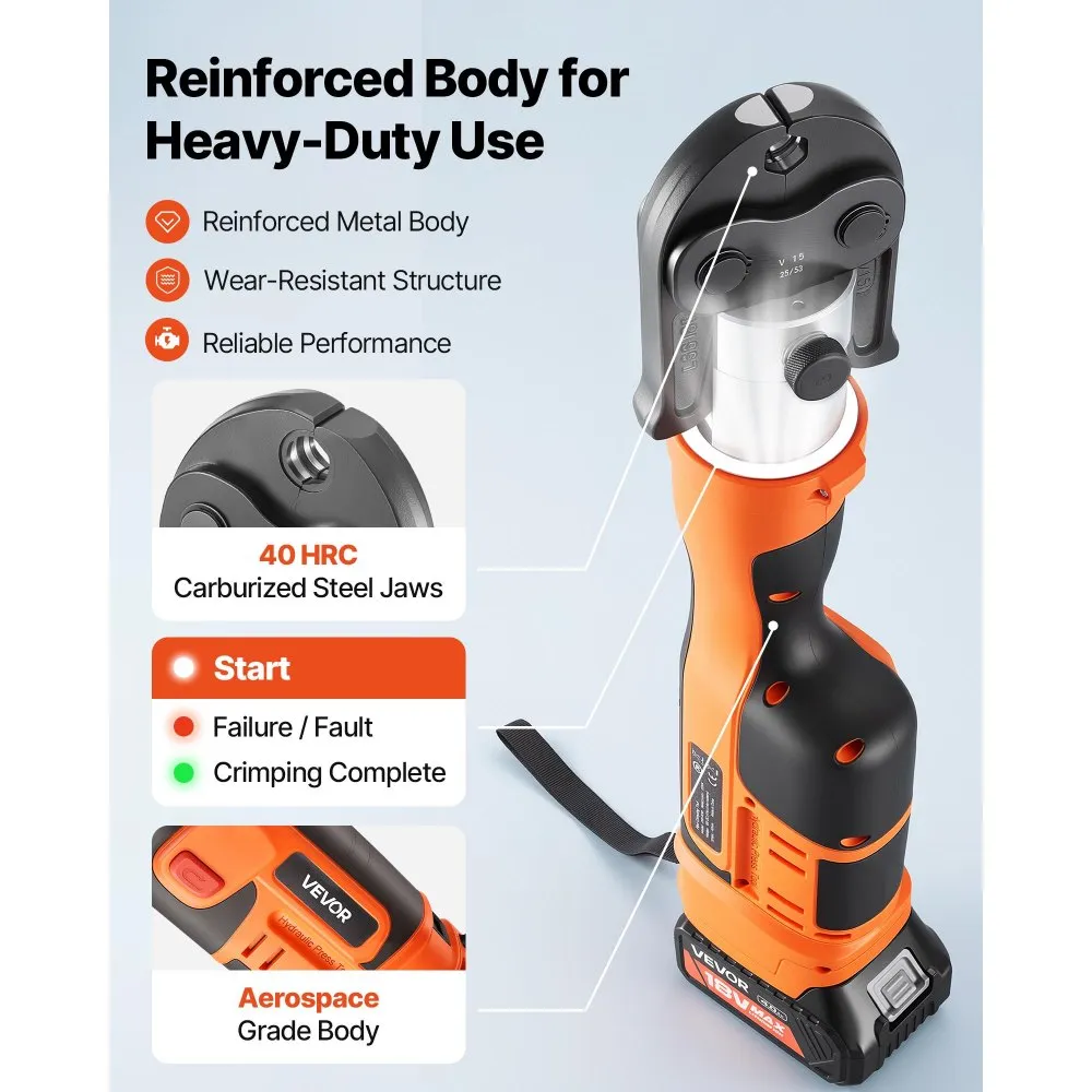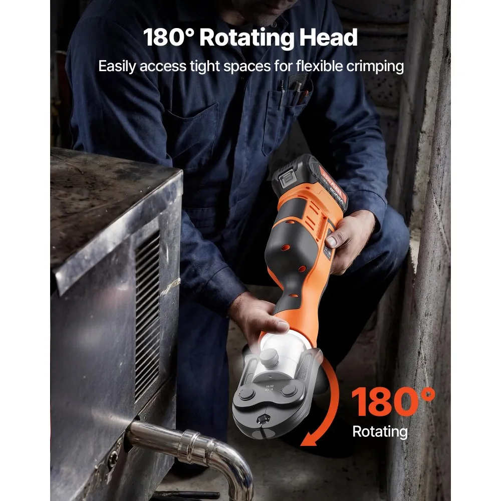 See elektriline torupressimistööriist on sobiv roostevabast terasest torudele ja sobib professionaalseks kasutamiseks. Komplektis on kiirlaadija ja kandekott.