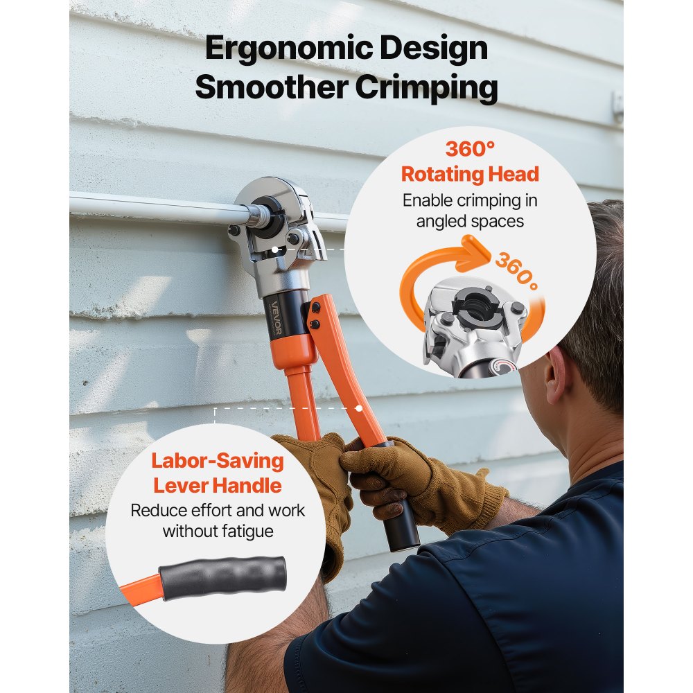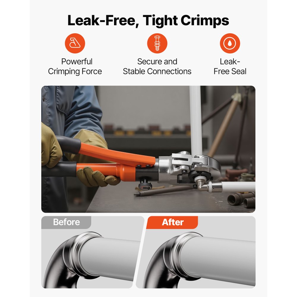 360° pööratav pea ja kompaktne disain muudavad tööriista kasutamise kitsastes ja raskesti ligipääsetavates kohtades lihtsaks. See on praktiline lahendus torude paigaldamiseks ja remondiks erinevates süsteemides.