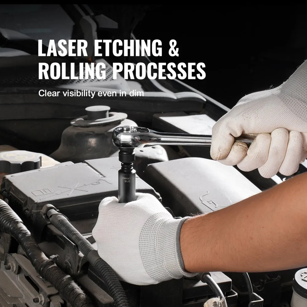 Hexagonal drive disain vähendab survet kinnititele, vältides nende kulumist ja kahjustumist. Tänu kergesti loetavatele lasergraveeritud suurusmärgistele on tööriistade valik lihtne ka hämaras valguses. praktiline lahendus autode ja masinate hoolduseks.