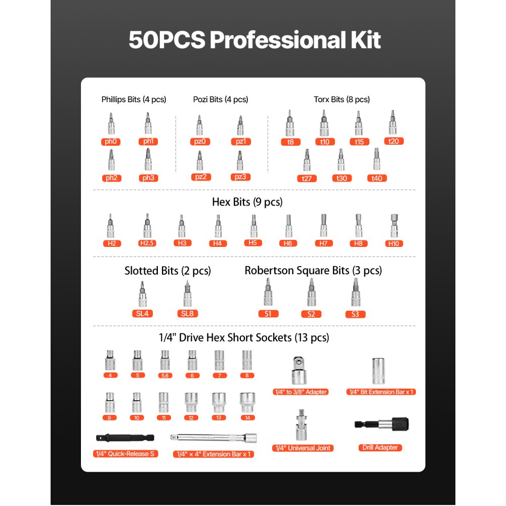 Klikkmomentvõtme Komplekt (1/4-Tolline, 2,3-27,1 Nm, Kahesuunaline)